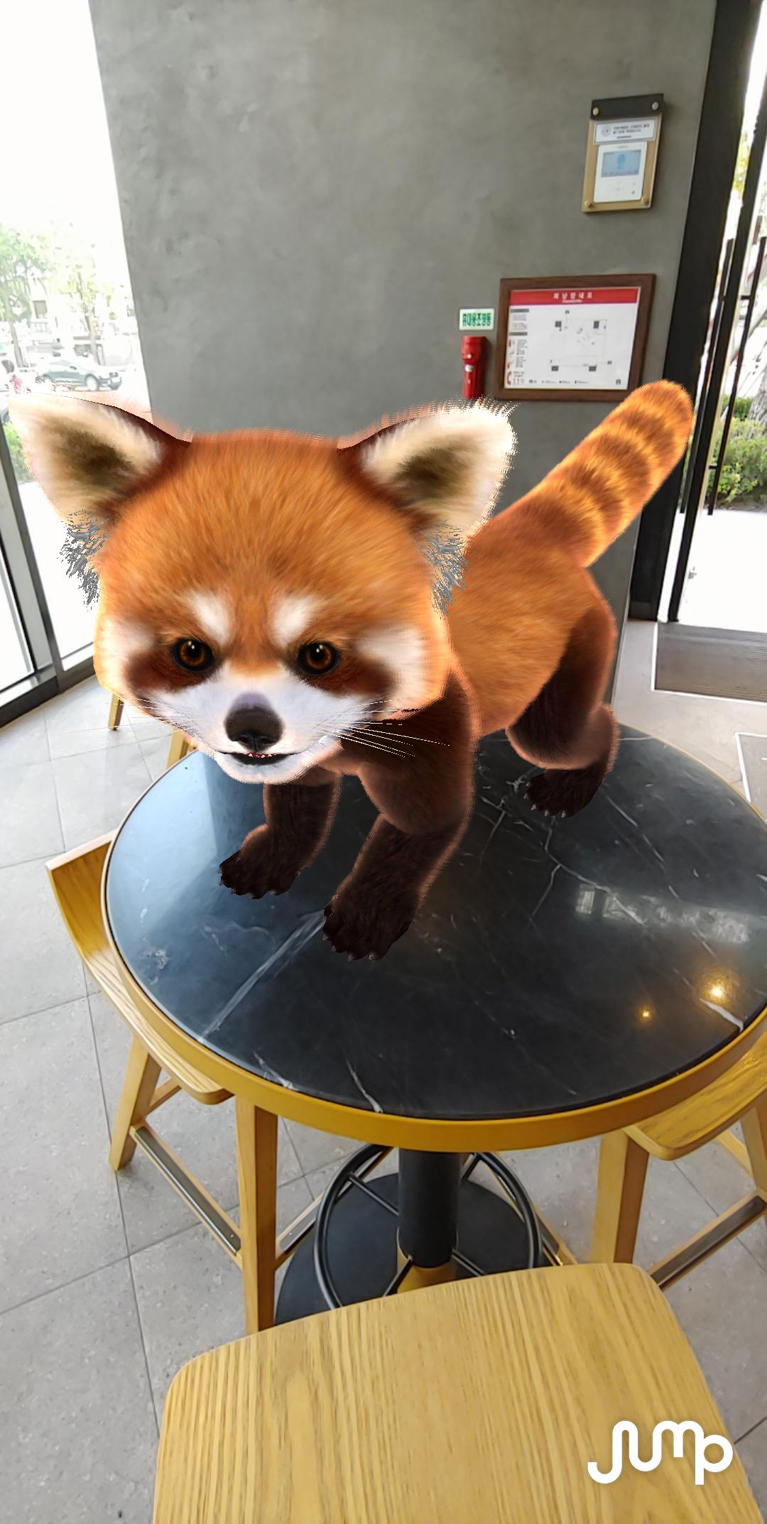 AR동물원은 기본적으로는 3화에서 본거처럼 Jump AR앱을 켜고 카메라 권한을 활성화 시킨 상태에서 돌아다니면 GPS기반으로 5종의 미니 동물을 찾을수 있고, 테이블이나 의자등을 인식시켜서 소환해서 이리보고 저리보고 요리보고 죠리볼수있는 AR게임이에요.