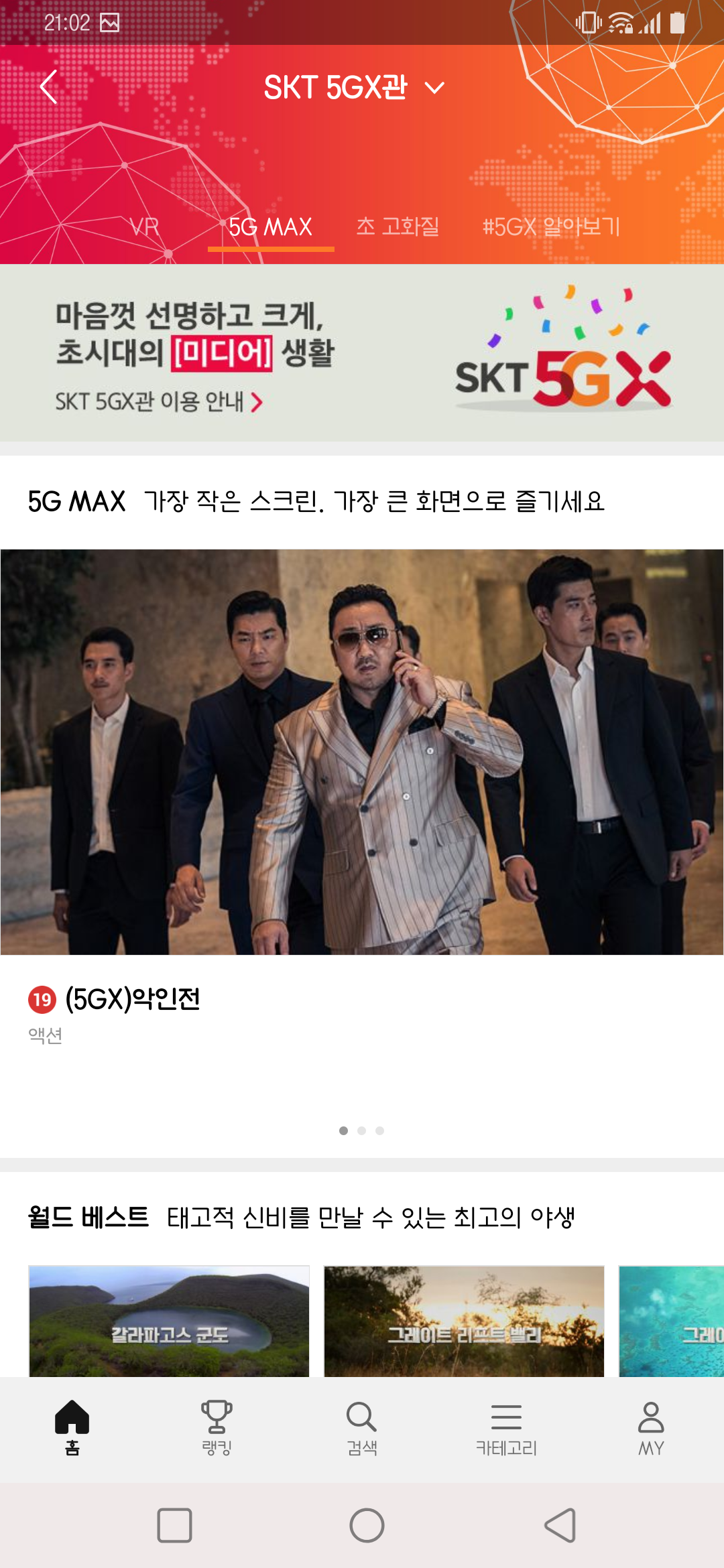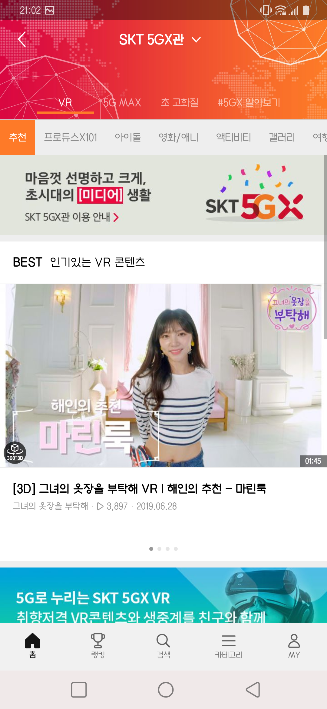 oksusu 앱에서 SKT 5GX관을 경험해 보았어요.